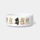 Alimente seu gato com estilo com esta tigela de animal de estimação personalizada fofa com três gatinhos adoráveis, Lucky o gatinho preto, Katie o British Shorthair e Bru o gatinho ruivo atrevido.