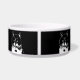 Tigela de comida para gatos preta e branca ilustrada com 'Hora de comer'