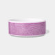 Uma tigela de comida com um padrão de couro falso lilac. Contém espaço para o nome do seu animal de estimação.