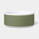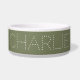 Uma tigela de comida para animais de estimação moderna e elegante com o nome escolhido em fundo verde sage. Clique em "Personalizar" para alterar o texto, fontes e cores. Esta tigela de comida personalizada para cães é uma escolha minimalista e sofisticada para o seu cão ou gato.