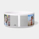 Tigela de comida personalizada para cães em cerâmica que você adiciona fotos e o nome do seu cão com modelos para 6 fotos e uma cor de fundo personalizável (mostrada em cinza). HAMbyWhiteGlove.