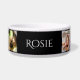 Tigela de comida personalizada para cachorro onde você adiciona fotos e o nome do seu cachorro. Basta escolher a opção personalizar para atualizar os campos. A cor do fundo pode ser alterada com a opção personalizar. 203-302-0337 HAMbyWhiteGlove. Mostrado em Preto.