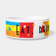 "Coma, Beba e seja Peludo" Personalize esta grande tigela para o seu bebê peludo. Exclua "Coma, Beba e seja Peludo" e escolha seu estilo de letra, cor, tamanho e texto favoritos.