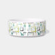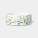 Esta tigela para animais de estimação moderna de meados do século apresenta quadrados abstratos, explosões de estrelas e um bumerangue nas cores azul aqua, amarelo, verde abacate e o nome do seu animal de estimação em uma fonte casual azul aqua. Adicione um elemento divertido à hora da alimentação do seu animal de estimação!