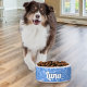 Eleve a hora da refeição do seu animal de estimação com este elegante prato para cães que traz charme vintage a cada mordida. Em um azul celeste rico, o prato apresenta um padrão espiralado que lembra os desenhos clássicos de tecidos vitorianos. Personalize-o com o nome do seu animal de estimação em tipografia cursiva branca elegante para um toque final único. Perfeito para a comida ou água do seu cão, este prato de cerâmica faz um presente delicioso e atencioso para os amantes de animais de estimação.