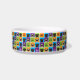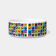 Eu amo os quadrados dos quadrados da cor dos Pugs azuis, os roxos, da laranja e do limão com jovem corça e pugs pretos. A bacia perfeita do cão para seu pug!