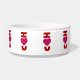 Vocês podem admirar meu desenho de Dia de os namorados e desenho romântico que eu chamo, "Eu te amo", de um coração vermelho e rosa listrado, adicionado a esta tigela de cerâmica de estimação. Você pode pedir esta tigela de cerâmica em média e grande.