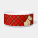 Dois dos mais bonitos cachorrinhos escoceses se posicionam contra um fundo vermelho, preto e xadrez dourado mantendo um olho atento na comida ou tigela d'água do seu pãozinho, fazer que ninguém mais que (nome do seu cachorro) coma dele. Portanto, certifique-se de personalizar esta tigela com o nome do seu animal de estimação antes de a colocar no seu carrinho!