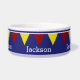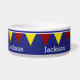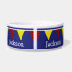 As fileiras de bandeiras vermelhas, brancas, e amarelas acenam através de um fundo azul náutico contínuo. Personalize com sua escolha do nome para um presente especial!