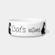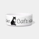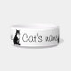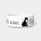 Um gato preto e branco confiante espera pacientemente ser alimentado neste simples design gráfico com fácil modelo para adicionar o nome de seu próprio gato.