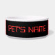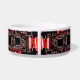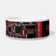 design com um fecho legal de um conselho de circuito de computador em vermelho e preto, e o nome do seu animal de estimação em vermelho. Coloque a tigela com um design personalizável para você personalizar com seu próprio texto, imagens e ideias. Imagem criada usando uma fotografia original e técnicas digitais.