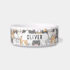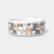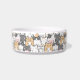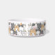 Esta encantadora tigela de gato apresenta um design adorável e caprichoso de vários gatos de desenho animado em diferentes cores e padrões, incluindo cinza, preto, branco e laranja. Cada gato tem uma expressão única e alguns até usam óculos, o que aumenta a estética divertida e alegre. O fundo é branco, o que faz com que os gatos coloridos se destaquem lindamente. Ela pode ser personalizada com o nome do seu gato clicando em "Personalizar este modelo".