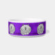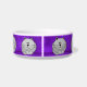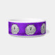 Esta bacia personalizada cerâmica feita sob encomenda bonito do animal de estimação tem gatos gordos cinzentos lunáticos dos desenhos animados sentar-se com suas patas dobradas abaixo e sua cauda envolvida ao redor, em um fundo roxo. Há diversos delas em torno do prato.