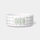 Uma tigela de animais de estimação elegante e moderna com padrão de grade geométrico em verde Personalizável com nome de animais de estimação para tornar este presente de tigela de animais de estimação um acessório bonito. Um presente ideal e pensativo para o dono de animais de estimação na sua vida. Colares, colares e camas de animais de estimação correspondentes, disponíveis da mesma maneira e coordenando as cores.