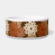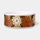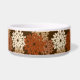 Tigela para animais de estimação em uma interpretação moderna de uma impressão floral tradicional de quimono japonês - flores estilizadas em tons de bege, marrom enferrujado e bege em um fundo marrom chocolate escuro
