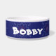 Tigela para pet com padrão floral azul. Adicione o nome do seu animal de estimação.