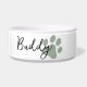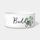 A pata mínima moderna imprime uma tigela personalizada de gato-de-gato. Apresentando impressão verde-senada