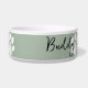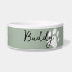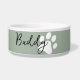 A pata mínima moderna imprime uma tigela personalizada de gato-de-gato. Apresentando impressão verde-senada