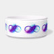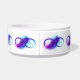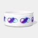 Símbolo infinito com uma bela pena pintada em cores roxas e azuis brilhantes sobre fundo branco.