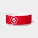 Linda pata de estimação sobre fundo vermelho Pet Bowl.