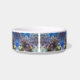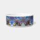 O adorável lionfish do Pet Bowl médio está nadando em um aquário de água salgada colorida. É uma fotografia original de ZoeSPEAK mostrando o padrão de tiras espessas e finas e barbatanas de rico neste peixe com aparência incomum. É uma foto colorida com o azul tropical, amarelo e rosa do aquário e o nariz rosa-salmão do peixe.