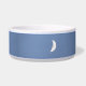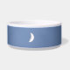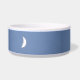 Esta maravilhosa tigela de estimação mostra uma bela fotografia de uma lua crescente tirada à luz do dia. O belo céu azul desaparece ao fundo enquanto a maravilhosa lua branca capta a atenção enquanto ela se aproxima de um quarto da fase da lua.