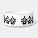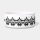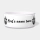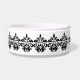 Uma cor damasco elegante em preto e branco numa tigela de comida de cão. Adicione o nome do seu cachorro a ele.