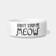 Esta adorável tigela moderna para animais de estimação é projetada com uma estética simples e minimalista em preto e branco. Com um toque de humor divertido com texto preto em um fundo branco nítido que diz 'Não me pare, eu miau' em homenagem ao lendário Freddie Mercury, esta tigela é um complemento encantador para qualquer lar de amantes de animais.