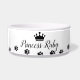 Todo animal de estimação merece jantar como realeza! Esta tigela personalizada com tema real para animais de estimação apresenta a citação "Tigela da Princesa [Nome do Animal de Estimação]," escrita em uma fonte de letra cursiva sofisticada, adornada com uma coroa e impressões delicadas de patas. É a maneira perfeita de tornar a hora da refeição ainda mais especial para o seu querido animal de estimação.