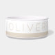 Leve Taupe ou Tan Personalizado Pet Name em uma comida de Bowl de Cão Cerâmico ou água com o nome do seu filhote e uma simples borda de stripe na parte inferior. A fonte fina sans-serif é chic e neutra e parecerá excelente em qualquer lugar.