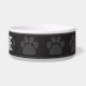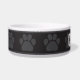 Prato de alimentação personalizado para animais de estimação com um tema moderno de pegada de pata em preto e cinza, que você pode alterar completamente para outras cores preferíveis. Personalize com o nome do seu animal de estimação ou mensagem personalizada para combinar com o estilo do seu animal de estimação. Esta tigela combina perfeitamente com a coleção Pet SAFETY ALERT Borda Moderna de Pegada de Pata, onde você encontrará outros produtos incríveis no mesmo estilo estético. Isso é indispensável para qualquer dono de animal de estimação.