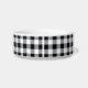 Este único cão de estimação ou tigela de gato personalizado apresenta seu nome personalizado em texto sérvio de todos os bonés clássico com um fundo padronizado de verificação de xadrezes de fazenda rústica em cores preto e branco. Uma tigela de água na moda e comida para o seu familiar peludo, disponível em tamanhos médios e grandes.