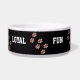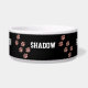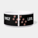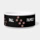 Um original, prato do alimento para cães do divertimento para os amantes dos animais que consideram animais de estimação parte da família. O fundo preto com falso gravou a folha, impressões cor-de-rosa na moda da pata do ouro. Cada seção indica uma qualidade conhecida do melhor amigo do homem. Da esquerda para a direita lê leal, o divertimento, o amigo, e a família. O centro é reservado para o nome do seu próprio cão para uma bacia personalizada do alimento para cães. Grande presente para um animal de estimação amado ou um amante e um proprietário do cão! Sinta livre mudar os traços do cachorrinho alistados com traços para seu próprio bebê da pele ou uma mensagem personalizada. Visite nossa loja de Zazzle.com/angela65* para mais presentes para animais de estimação e presentes personalizados do amante dos animais.
