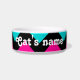 Um padrão divertido, moderno e divertido de gírias em rosa quente, turquesa, e preto em um prato de comida de gato. Adicione o nome do seu animal de estimação a ele.