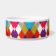 Padrão alegre de diamante vintage na sua escolha de lindo prato para animais de estimação. Adicione um toque brilhante e positivo de cor à rotina diária do seu 'melhor amigo'. Personalizável com a sua escolha de cor de fundo. Este prato com padrão argyle simplesmente elegante certamente adicionará um charme vintage a qualquer espaço ... O que mais você ou seu cão poderiam pedir? Coleira personalizável, guia e biscoitos são vendidos separadamente...