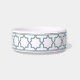 Trate seu amigo peludo a este elegante prato personalizado, apresentando um clássico padrão de azulejo geométrico marroquino em branco crocante e Azul Po dusty para um visual atemporal e sofisticado. Perfeito para adicionar um toque de charme global à hora da refeição do seu animal de estimação. Personalize com o nome do seu animal de estimação.
