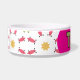 Crie o mimo definitivo para a hora da refeição do seu animal de estimação com esta tigela personalizada inspirada no estilo boho, apresentando um vibrante padrão geométrico rosa, dourado e azul turquesa em um fundo branco limpo. Perfeita para decorações modernas e boêmicas, esta tigela para animais combina estilo e funcionalidade perfeitamente. Faça da tigela do seu animal parte da decoração da sua casa boho!