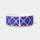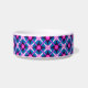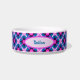 Adorável padrão estilo retrô de meados do século, principalmente em rosa, azul turquesa e ameixa. A tigela de comida para animais de estimação pode ser personalizada com o nome do seu cão (ou gato) e combina com a coleira de bandana para animais disponível na minha loja.