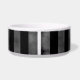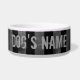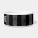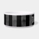 Um prato legal de comida de cão com um preto legal e cinzento e um padrão estriado de cinzas. Adicione o nome do seu animal de estimação a ele.