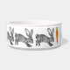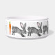 Minha pintura aquosa de coelho de cinza mole em um formato grande faz uma tigela criativa para qualquer animal de estimação, mas especialmente para seu coelho de estimação! Tem uma cinza neutra e um aspecto branco. Coelhinho também tem um olho castanho e orelhas cor-de-rosa. Personalize com o nome do seu animal entre as duas cenouras - é fácil personalizar usando o modelo de texto e o menu de edição. Esta tigela não tem jantes, então seu pãozinho não pode pegá-la e jogá-la. Perfeito para quem gosta de coelhos, animais e natureza. Arte e design originais peculiares, únicas, de Tuzi Williams.