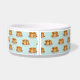 Um padrão delicioso de pilhas de panquecas em placas, cobertas de xarope de bordo e cercadas em polkadots. A cor de fundo é um verde-minúsculo agradável! Este padrão de panquecas divertido e saboroso é uma ideia de presente de excelente para comidas e amantes de panquecas. Personalize esta tigela de comida com o nome do seu animal de estimação na frente.