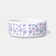 Patas coloridas feitas em forma de corações adornam esta linda tigela de comida e água. Este design mostra a maneira como nossos amigos peludos deixam sua marca em nosso coração.