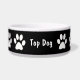 Tigela grande para cão com impressões de patas brancas e fundo preto e o cão dizendo "cachorro superior" que pode ser substituído pelo nome do seu cão, tornando este um design de tigela de pet classudo. Use para uma tigela de água, tigela de comida ou para todos os seus petiscos caninos.