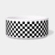 Esta tigela para pet é mostrada em uma estampa xadrez preta e branca fofa.