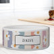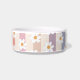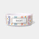 Esta tigela floral de animais de companhia é decorada com margaridas brancas em um fundo listrado pastel. Facilmente personalizável com o nome do seu animal de estimação.