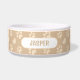 Tigela para cão ou gato com padrão de patas e coração em tons bege com etiqueta de nome, para o companheiro peludo mais fofo. Selecione o tamanho e personalize facilmente o texto. - Kate Eden Art