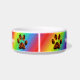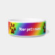 Imagem de patas lamacentas sobre fundo de cores do arco-íris.
