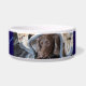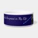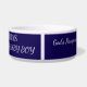 Este design de tigela de cerâmica para animais coloca a foto do seu companheiro no centro, com o nome e o apelido elegantemente exibidos à direita. À esquerda, a frase “Patas de Deus na minha vida” é combinada com uma trilha de pegadas azuis claras, equilibrando a composição com simbolismo sincero. Uma homenagem moderna e terna, ideal para pais de animais que valorizam a fé e a alegria do seu amigo peludo.