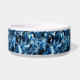 A tigela cerâmica para animais de companhia é mostrada com um impressão azul no estilo camo. Personalize este item ou comprar como está. Imagem do stock