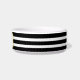Apetite ósseo! Esta tigela de animais de estimação apresenta listras brancas e pretas e, no centro, uma borda metálica de ouro. Personalize com o nome e a fonte do seu cão que escolher. Esta bela tigela de cerâmica vem em dois tamanhos e tem várias listras coloridas de tendências diferentes para escolher em minha loja. Os detalhes metálicos dourados são simulados na trabalho de arte. Visite minha loja, Hazel Eyes Design Co. para designs mais bonitos e clássicos.